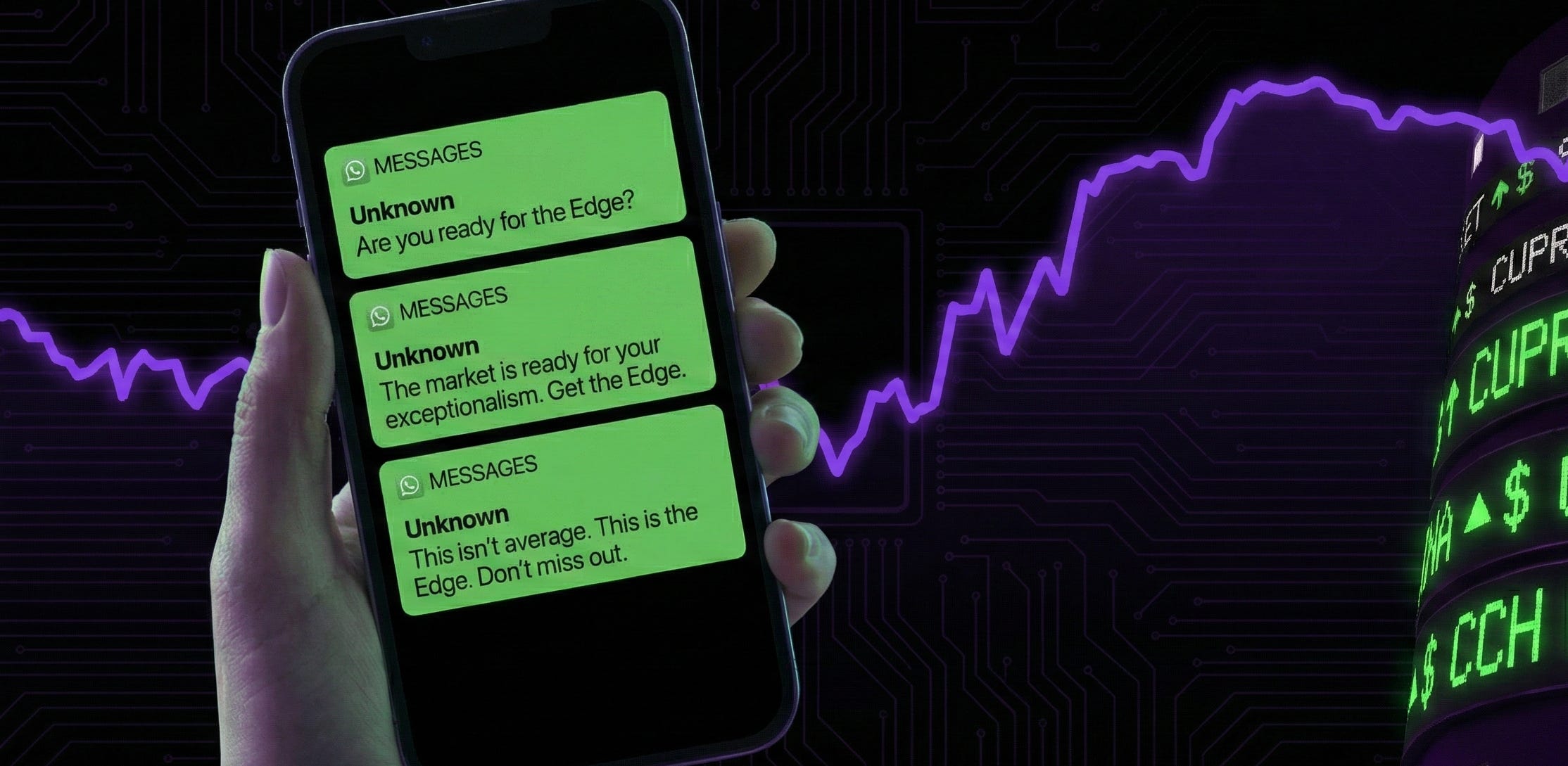 The scammers send out innocuous and generic investing wisdom full of profound Warren Buffet quotes, building trust over time. Eventually, they drop the pitch: “Are you ready for the Edge?”